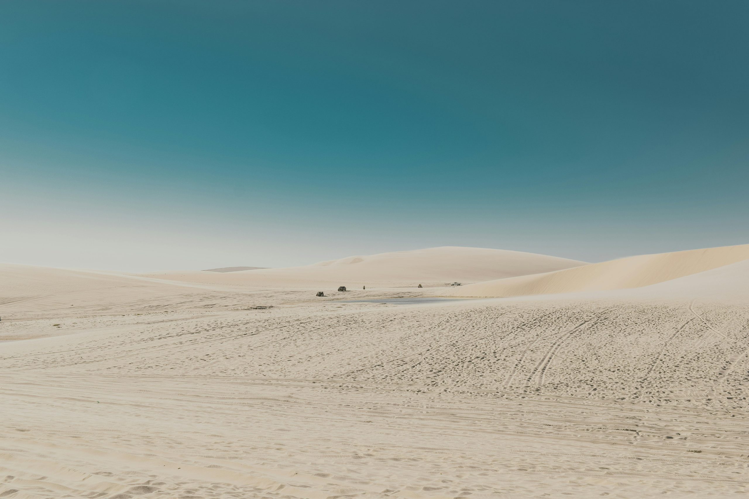 Vast Desert Landscape With Rolling Dunes And A Bright Blue Sky, Showcasing Nature’s Untouched Beauty.